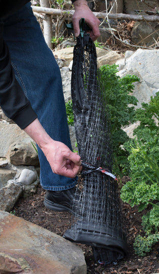 All season protection from unwanted animals. Durable construction can be used year after year. The mesh allows air, water and sunlight to penetrate, which is critical for plant life. A fiberglass frame supports the cover and easily pop open for quick installation and folds for compact convenient storage. Four (4) spikes are included for anchoring in the ground.