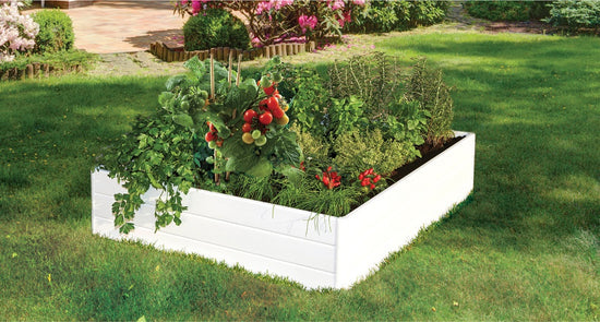 The NuVue Raised Garden Bed allows you to easily add a beautiful garden to your outdoor space. No tools are required and set-up or take-down is quick and easy with NuVue’s unique Quick-Connect system. The weather resistant, polymer construction is maintenance free and will not rot or rust making for year’s of gardening enjoyment. Available in white or slate gray, the woodgrain panel texture enhances to garden bed’s appearance. At 44.5” length x 44.5” width, there is ample space to grow plants, vegetables, herbs, flowers or fruits. The 11.5” wall height provides the versatility to grow a variety of plants and reduces the amount of bending required while maintaining your garden.